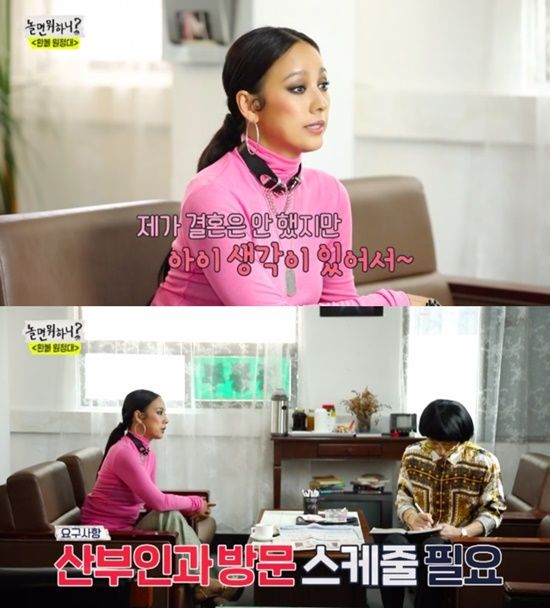 또 '환불원정대' 활동 당시 엄정화의 집을 찾아 임신 시도를 위해 의사가 '술을 마시면 안 된다'고 했다는 말을 공유하며 "그래서 집에서 한 잔도 못 먹고 있다. 오빠에게는 담배를 피우지 말라고 했다. 밤낮으로 바쁘다"며 근황을 전하기도 했다.