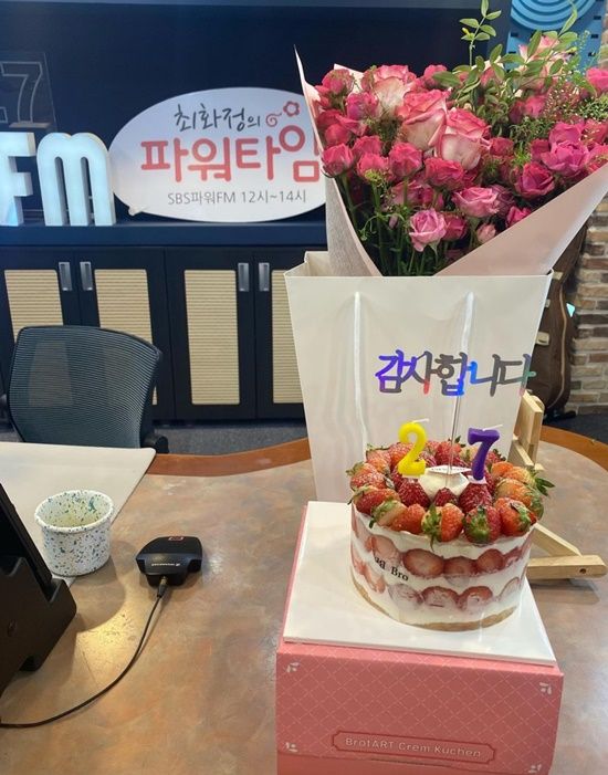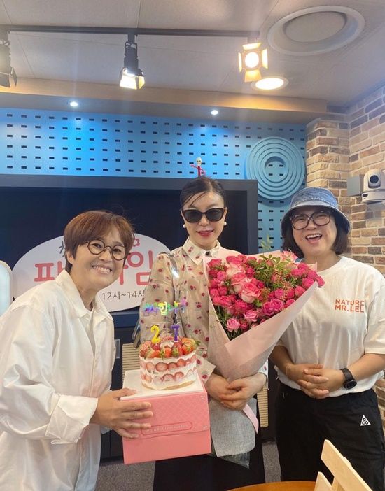 27일 '최화정의 파워타임' 공식 계정에는 "꽃다발이랑 케이크 사서 화정 DJ보다 먼저 온 송은이, 김숙"이라는 글과 함께 사진 여러 장이 업로드됐다.