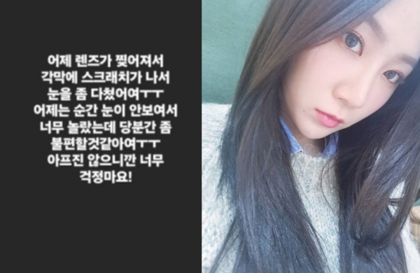 27일 소유는 SNS에 ""어제 렌즈가 찢어져서 각막에 스크래치가 나서 눈을 좀 다쳤어요"라며 부상 소식을 알렸다.