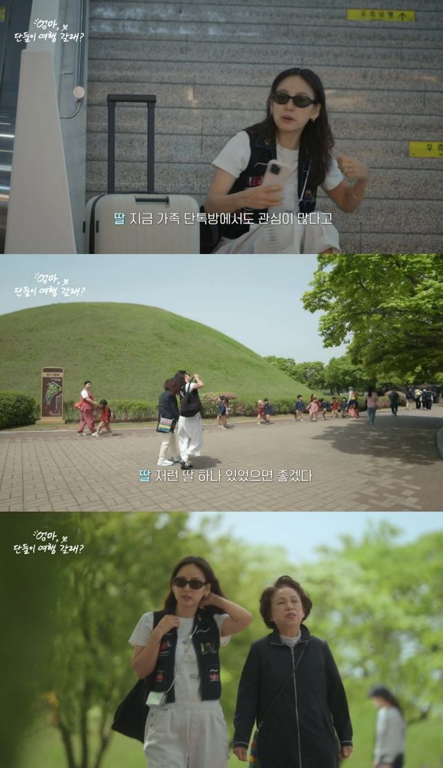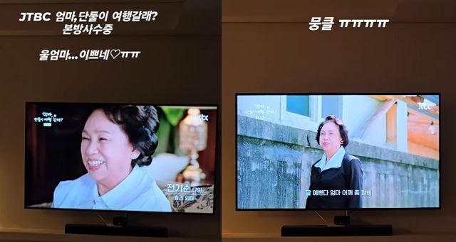 26일 이효리의 친언니 이유리 씨는 개인 채널에 "JTBC '엄마, 단둘이 여행 갈래?' 본방사수 중, 울엄마 이쁘네♡"라는 문구와 함께 동생 이효리와 엄마의 여행 예능을 시청 중인 영상을 업로드했다.