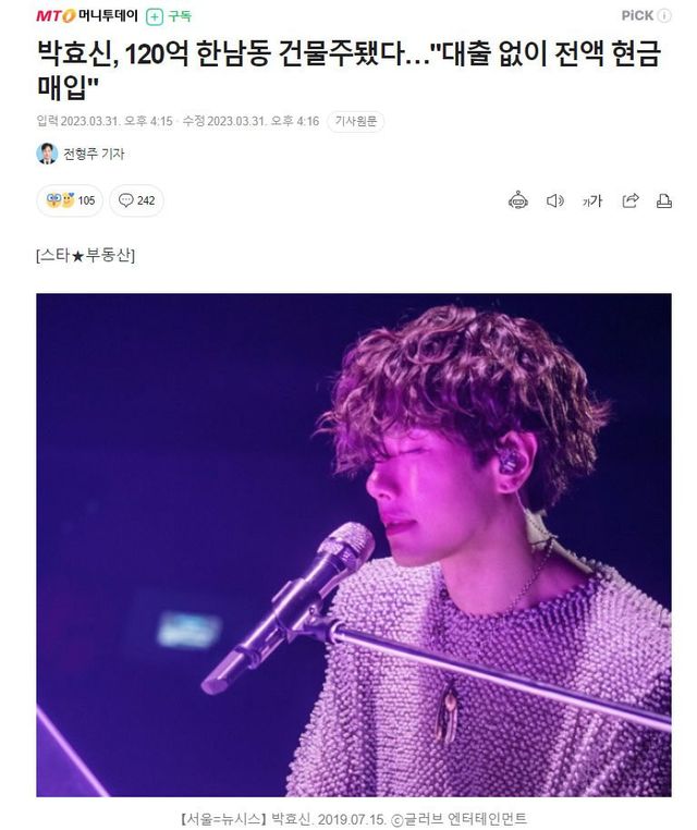 부동산업계 등과 대법원 등기부등본에 따르면 박효신은 용산구 한남동 소재 건물을