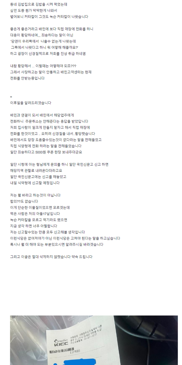 배달음식에서 커터칼