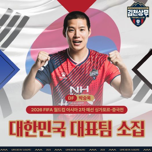 김천상무프로축구단(대표이사 배낙호, 국군체육부대장 김동열)의 박승욱이 ‘2026 FIFA 북중미 월드컵 아시아지역 2차 예선’ 두 경기에 나서는 A대표팀 23인에 발탁됐다.