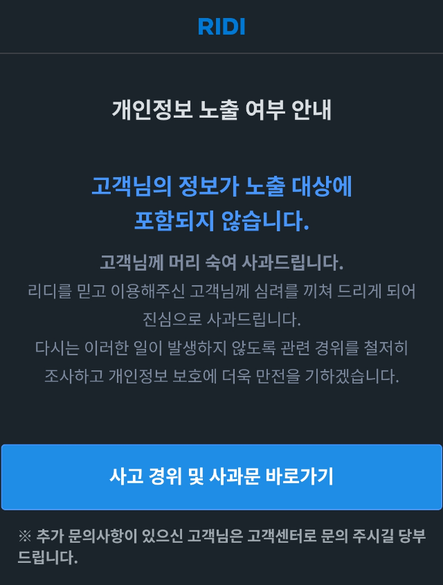 리디북스이번에 5814명 개인정보 유출됨