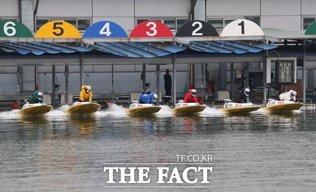 미사리경정장에서 출전 선수들이 힘차게 출발하고 있다./경륜경정총괄본부