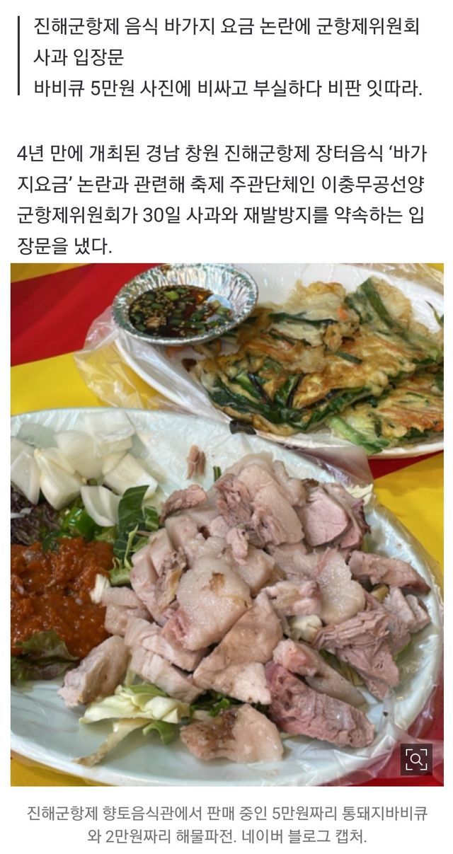 해물파전이 2만원이라 논란됨