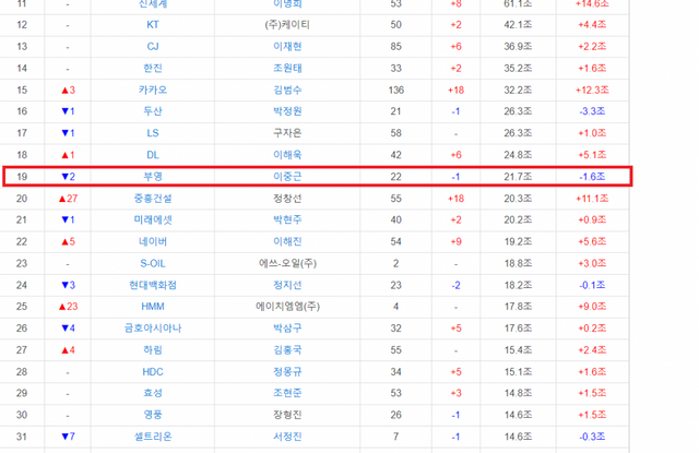 네이버, S-OIL, 현대백화점 그룹, 영풍 같은 타 대기업보다 재계서열이 높은 19위.