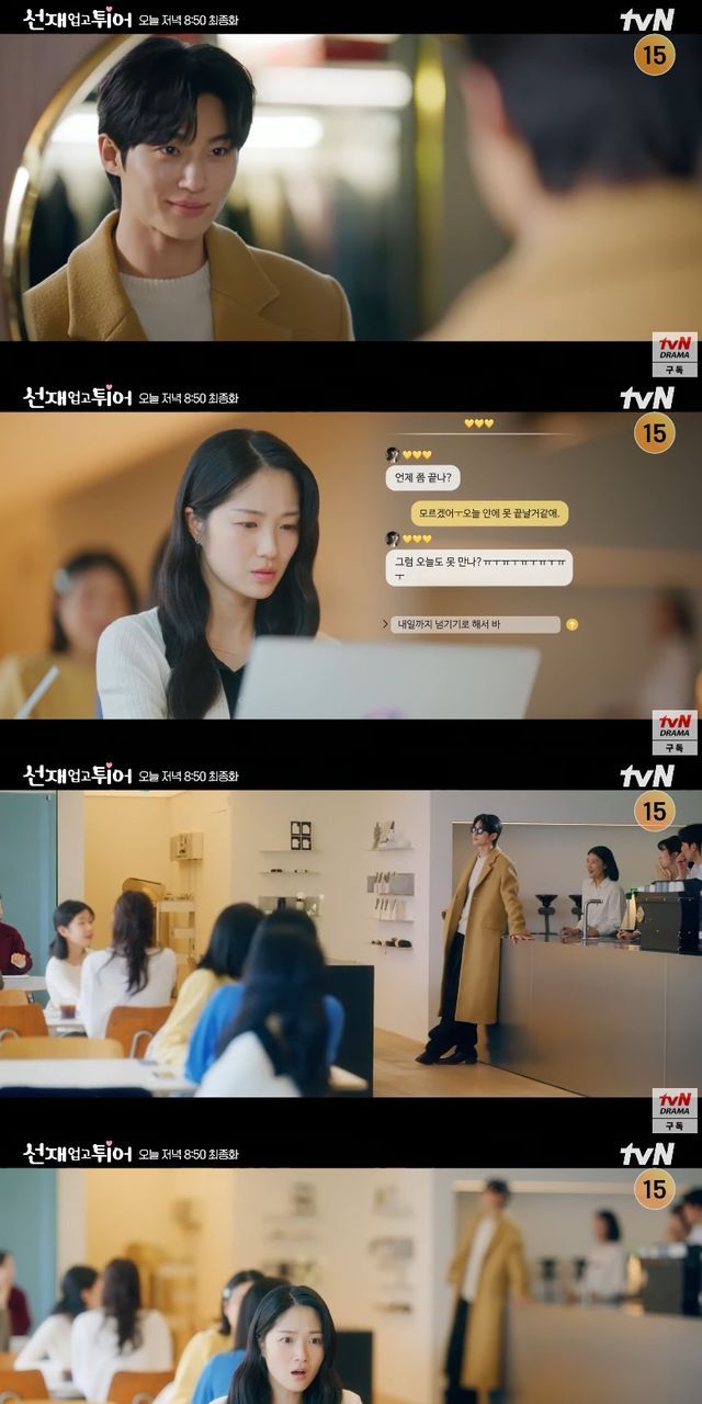 임솔은 "내일까지 넘기기로 해서 바빠. 다 끝내고 연락할게"라고 답장했지만, 결국 류선재는 멋스러운 차림으로 카페에 도착해 시선을 집중시킨다. 놀란 임솔을 보고도 아랑곳하지 않은 그는 모든 테이블에 디저트 세트를 돌리며 "당 떨어질까봐. 먹으면서 일해"라는 능청스러운 메시지를 보낸다.