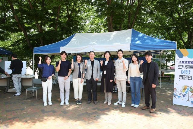 5월 23일 대구가톨릭대 캠퍼스에서 진행한 ‘도박중독 예방 캠페인’에 참여한 스포츠토토코리아 관계자들과 한국도박문제예방치유원 일동. 사진제공 | 스포츠토토코리아