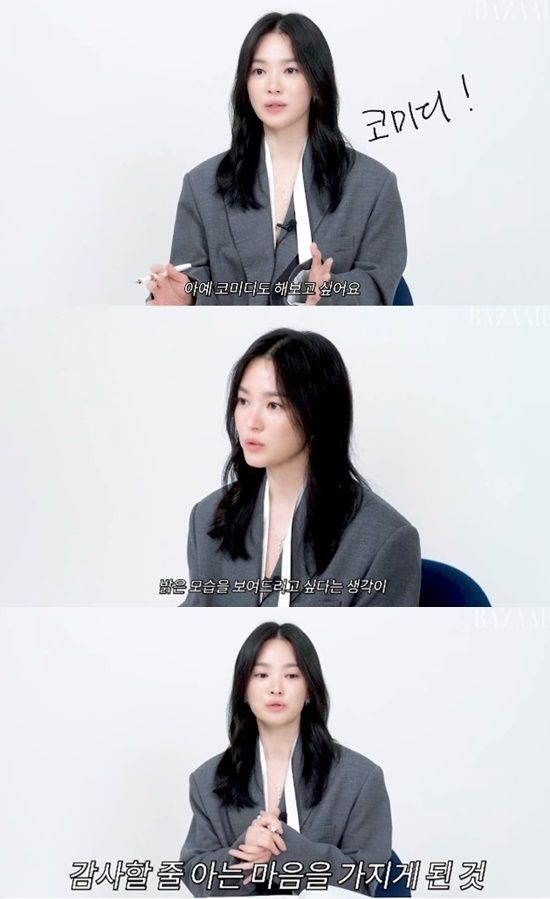(엑스포츠뉴스 김유진 기자) 배우 송혜교가 스스로를 '웃긴 사람'이라고 표현하며 코미디에 도전하고 싶은 의지를 드러냈다.