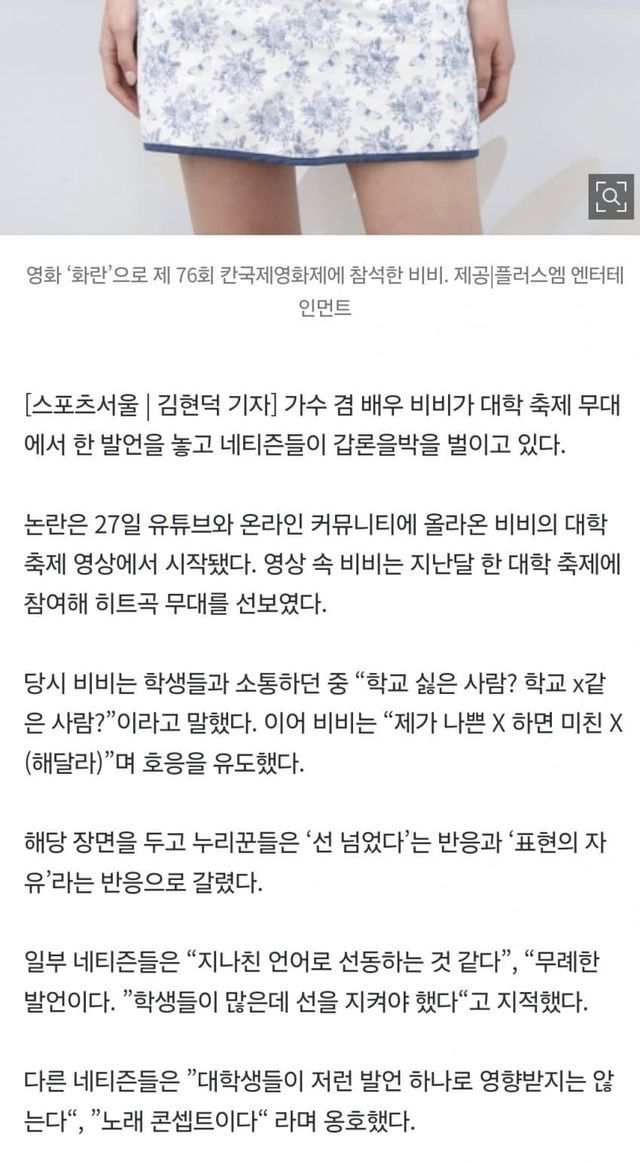 대학 축제는 대학생들이 주최하는 연례 행사로, 다양한 공연과 활동이 펼쳐지는 자리입니다. 많은 유명 연예인들이 참여하여 학생들과 교류하는 기회를 제공합니다. 비비가 이 행사에서 한 발언이 큰 화제를 모았습니다.