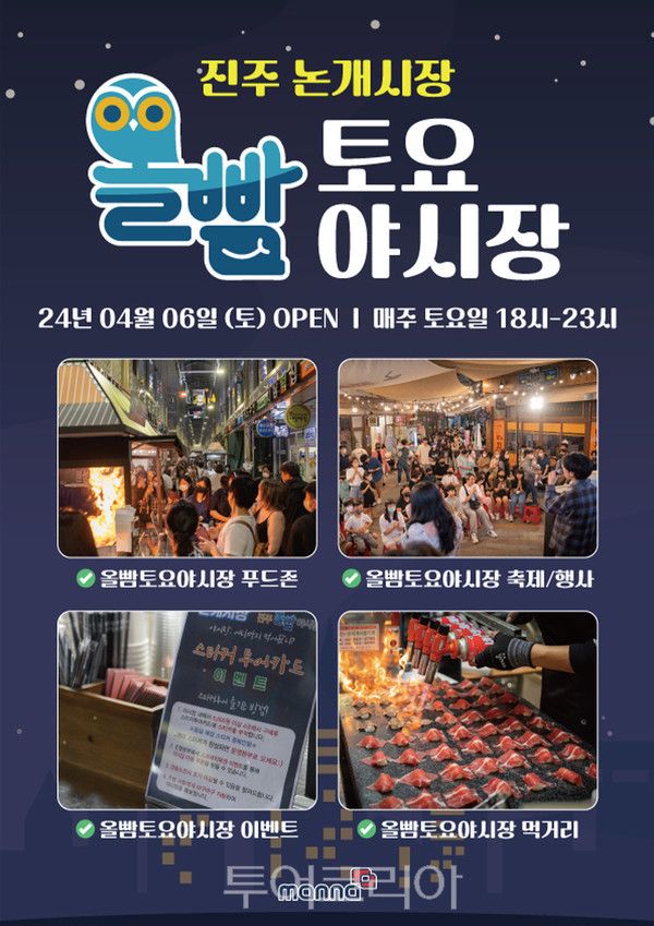[투어코리아=김지혜 기자] 진주시가 위축된 전통시장 상권을 활성화하고 야간 및 체류형 관광객 유치를 위해 2022년도부터 운영하고 있는 야시장 ‘올빰야시장’이 매주 2000여 명의 관광객찾는 핫플이 됐다.