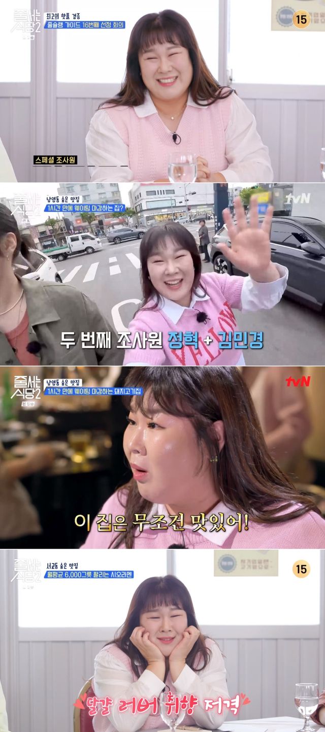 김민경은 지난 27일 방송된 tvN ‘줄 서는 식당 2’에서 스페셜 조사원으로 등장해 직접 웨이팅 한 맛집을 소개했다.