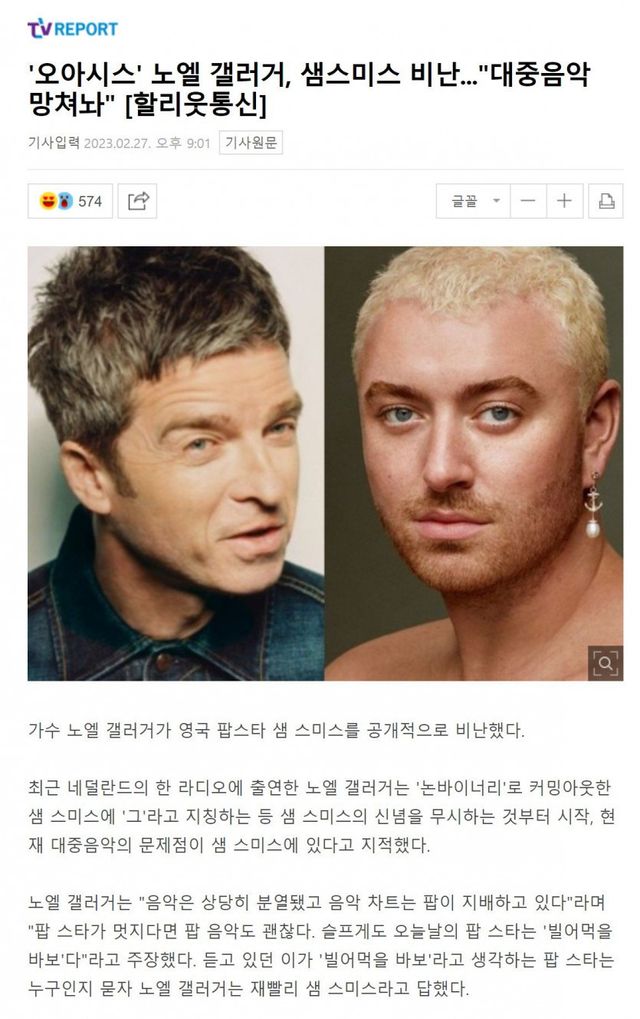 샘스미스가 망친 대중음악 재건을 위해 오아시스 재결합