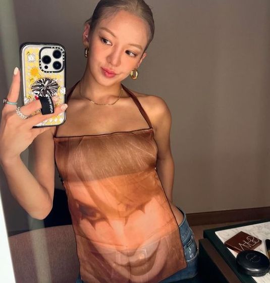 공개된 사진 속 효연은 홀터넥 디자인의 시스루 상의와 청바지를 매치한 패션을 선보였다.