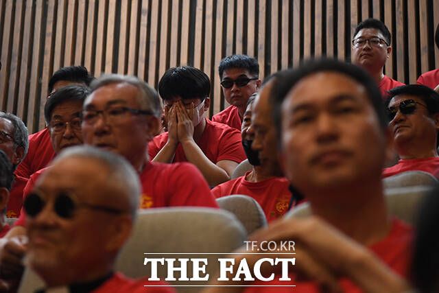 해병대예비역연대 회원들이 '채상병 특검법' 재의결 투표를 참관하고 있다.