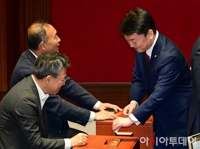 아시아투데이 이병화 기자 = 안철수 국민의힘 의원이 28일 국회에서 열린 제21대 국회 마지막 본회의에서 채상병 특검법(순직 해병 수사 방해 및 사건 은폐 등의 진상규명을 위한 특별검사의 임명 등에 관한 법률안 재의의 건) 재표결을 하고 있다.