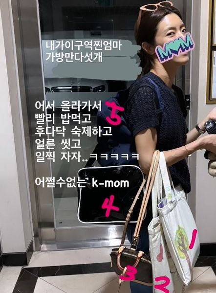 그는 "어서 올라가서 빨리 밥먹고 후다닥 숙제하고 얼른 씩고 일찍 자자. 어쩔 수 없는 k-mom"이라며 육아로 정신없는 일상을 토로했다.