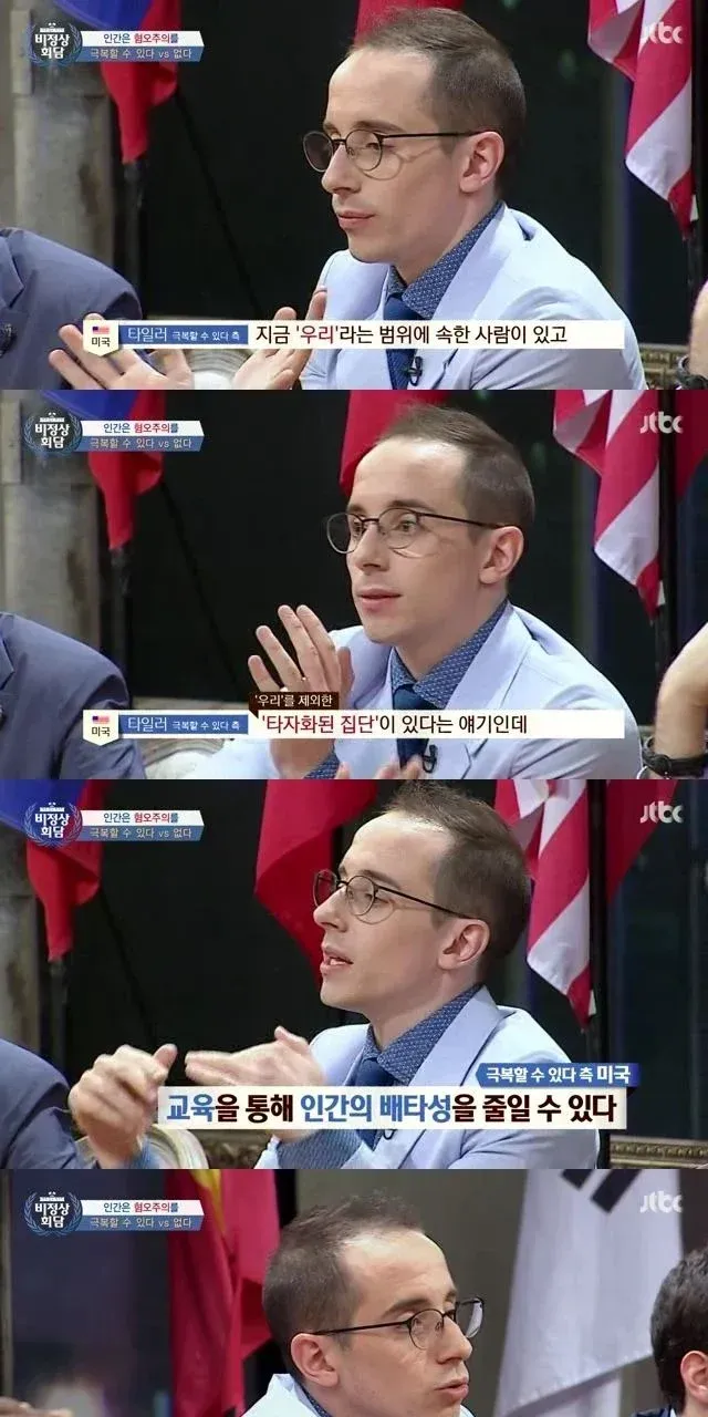타일러: 혐오주의의 원인을 없앨순 없지만 교육을 통해 혐오주의는 없앨 수 있다