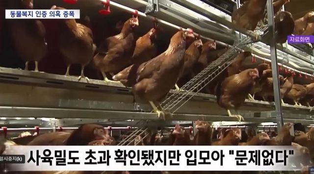 몰아 놓고 사육한 닭이 만든 계란
