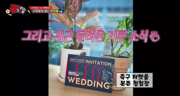 김진경은 SBS 예능 프로그램 ‘골 때리는 그녀들’(이하 ‘골때녀’)에서 FC구척장신 소속 미드필더로 활약 중이다. 지난 22일 방송된 ‘골떼녀’에서는 김진경과 김승규의 축구 티켓을 연상시키는 청첩장이 공개돼 눈길을 끌었다.