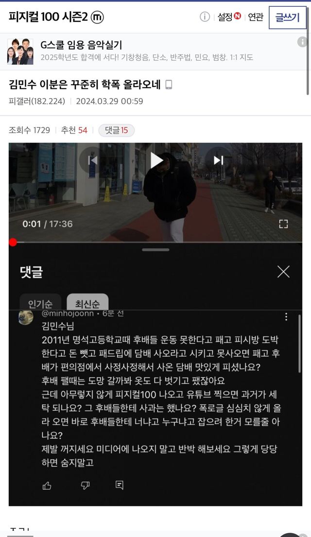얼마전 학폭 폭로자 떴었던 피지컬100 시즌2 참가자 타노스 김민수 근황
