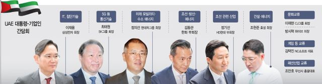 이날 알 나흐얀 대통령은 재계 총수들 뿐만 아니라 패션, 문화예술 관련 산업계 대표 기업인들과도 이야기를 나눠 이목을 끌었다. 이재현 CJ그룹 회장을 비롯해 방시혁 하이브 의장, 김택진 엔씨소프트 대표, 조만호 무신사 총괄대표 등과의 면담도 따로 진행됐다. 업계에서는 케이팝(K-pop)이나 패션 부문 등 문화 전반에 대한 대규모 투자를 기대하는 의견도 나온다.