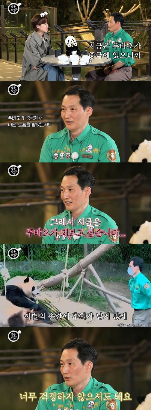 송영관은 "처음엔 이별이 물론 힘들다. 부모님과 이별하거나 동물들과 이별할 때도 예고 없이 닥치지 않냐. 후회도 많이 남고"라며 "근데 푸바오는 확실히 (이별을) 예정하고 시작을 해서 이별의 순간에 후회가 남지 않게 어떻게 하루하루 최선을 해야하는지 (고민하고) 실천했다"라고 말했다.