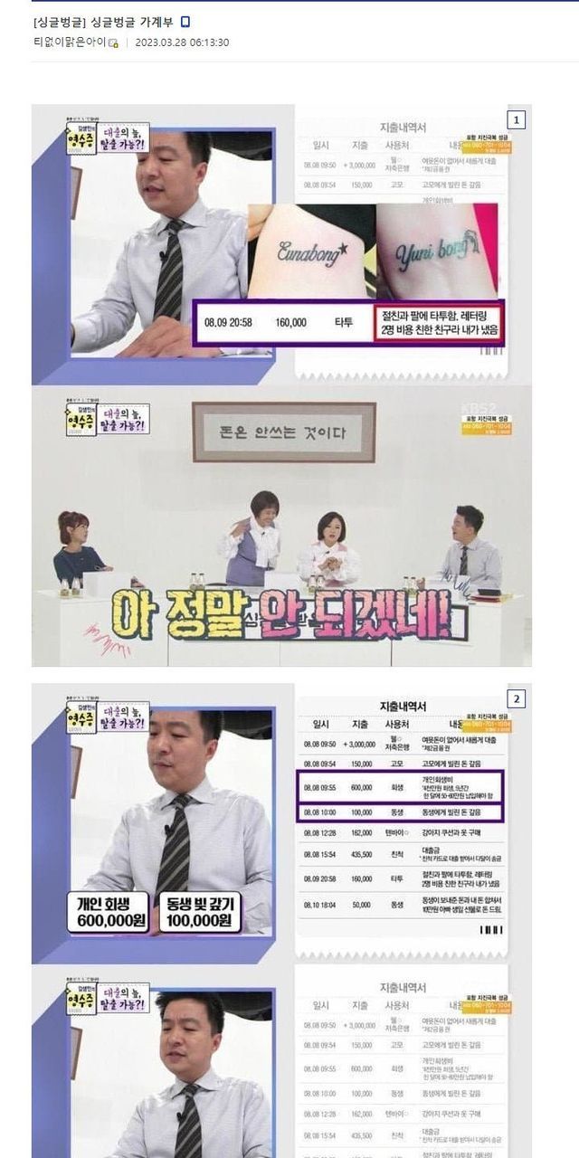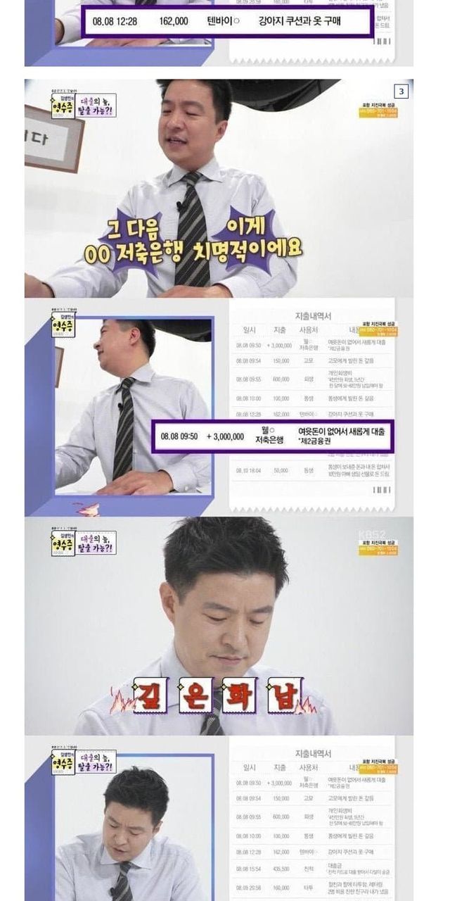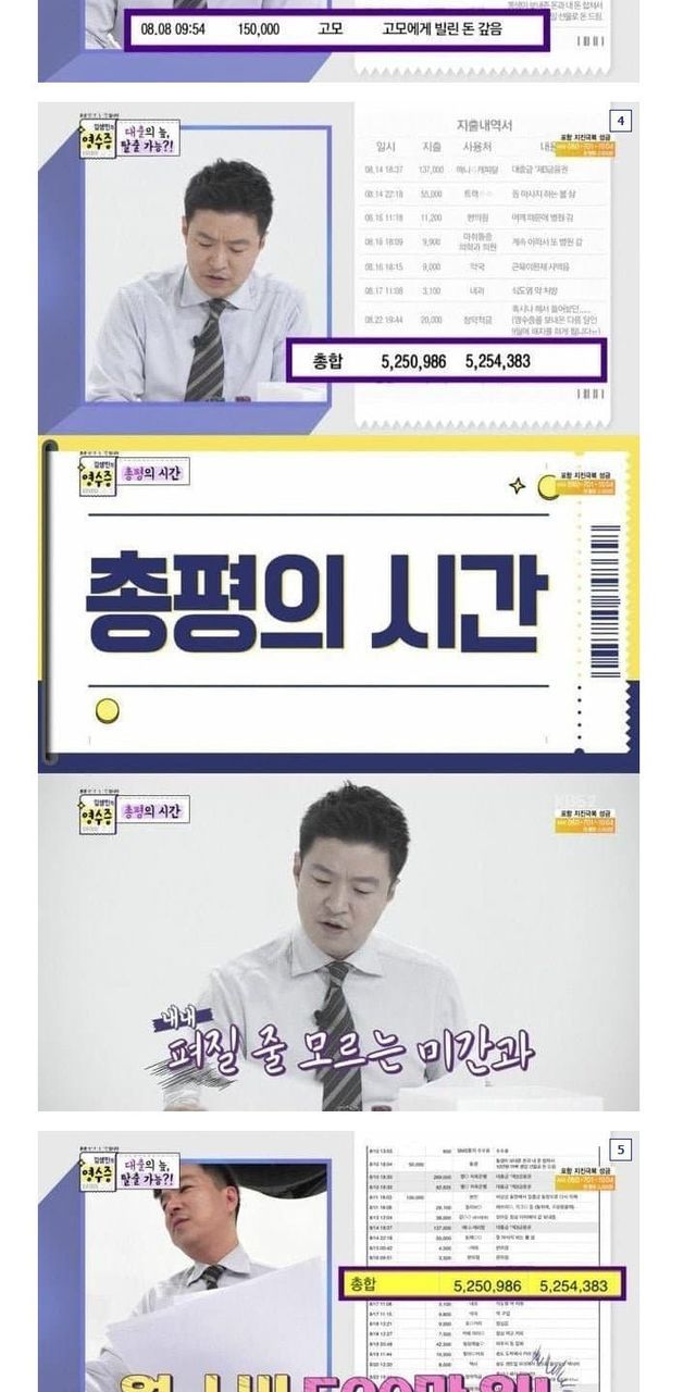 정정합니다 :이날 첫 번째 영수증의 의뢰자는 4,200만 원의 빚이 있는 직장인으로 월급 190만 원 대부분을 빚으로 지출하고 있었다. 또한 그는 생활비 대출은 물론 지인들에게 돈을 빌린 것도 모자라 대부업 대출에 개인회생까지 진행 중인 ‘대왕 스튜핏’ 영수증으로 모두를 놀라게 했다.