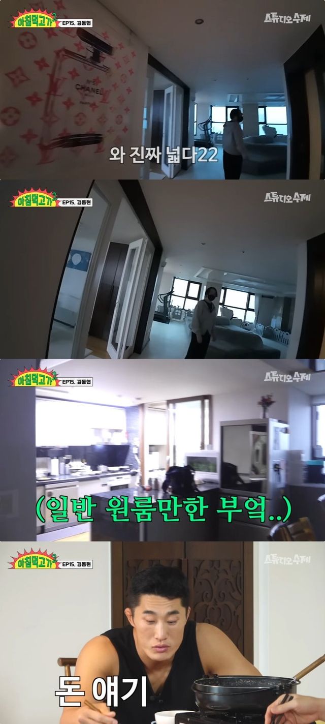 장성규가 “여기 평수가 어떻게 되냐”라고 묻자 김동현은 “80평”이라고 답했다. 이어 장성규는 조심스럽게 “‘김동현이 왜?’ ‘왜 여기 살아?’라는 반응이 있더라”라고 말을 이어갔다.