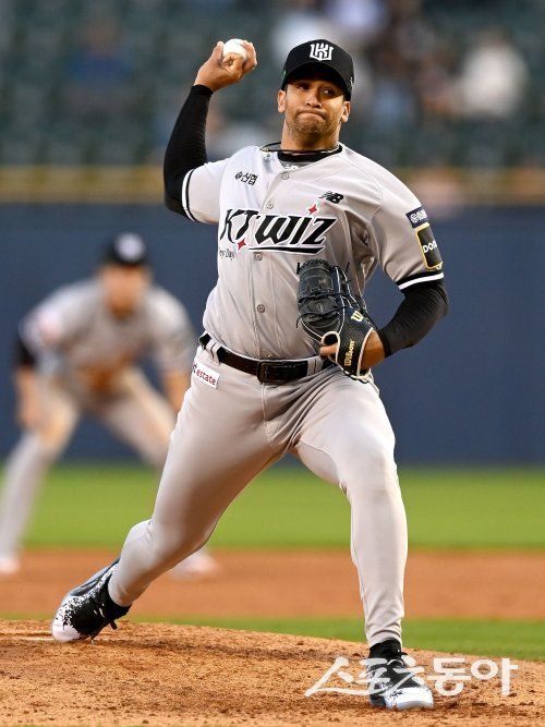28일 서울 잠실야구장에서 '2024 신한은행 SOL뱅크 KBO리그' KT 위즈와 두산 베어스 경기가 열렸다. 선발 투수로 등판한 KT 쿠에바스가 역투하고 있다. 잠실 | 김종원 기자 won@donga.com