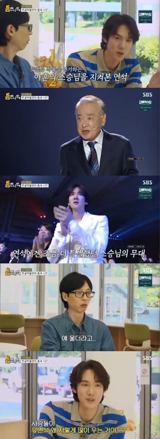 뿐만 아니라 이날 유연석은 얼마 전 '백상예술대상'에서 이순재의 무대를 보면서 폭풍 오열했던 이유를 들려줬다. 유연석은 "이순재 선생님이 제 대학교 은사님이시다. 선생님이 '백상'에서 '리어왕' 대사를 하시지 않았냐. 제가 대학교 3학년 때 '리어왕' 공연을 했었다"고 했다.
