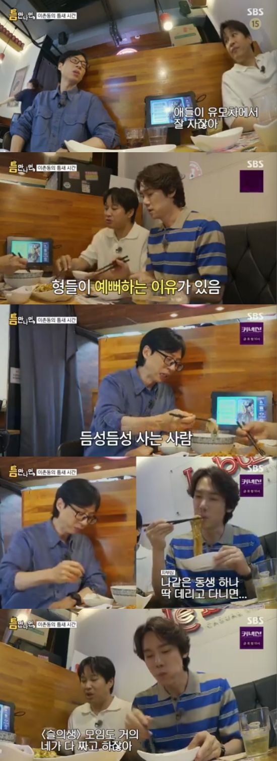 그러면서 유재석은 "나는 섬세함이 떨어진다. 듬성듬성 사는 편"이라고 했고, 유연석은 "나같은 동생 한 명 데리고 다니면, 피곤할 수는 있어도 좋다"면서 웃었다. 차태현도 "'슬기로운 의사생활' 모임도 너가 다 만드는 것 아니냐"고 말하기도.