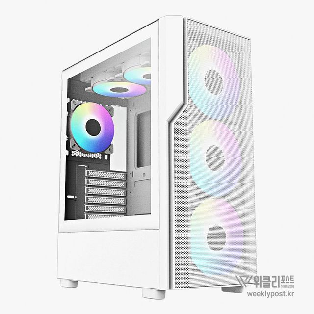 메쉬 디자인의 미들타워 PC 케이스 쿨맥스 스테디에 화이트 색상이 추가됐다. 기존 블랙 색상에 이은 색상 추가 버전으로 시스템 내부의 공기 순환에 초점을 둔 제품이다. 전면 메쉬에 전자 회로를 연상시키는 포인트 디자인을 적용. 쿨링팬은 전면 RGB 140mm 팬 3개에 후면 RGB 120mm 팬 1개로 총 4개가 기본이다.
