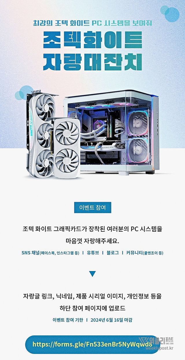 행사는 5월 27일부터 6월 16일까지 진행하며, 최종 선별된 1인에게는 ZOTAC GAMING GeForce RTX 4070 SUPER Twin Edge OC White가 제공된다.