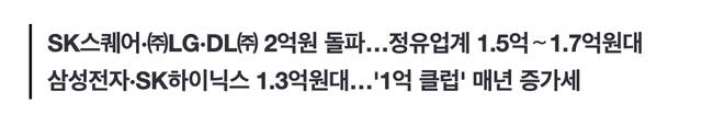 SK, 삼성, 현대, LG 등 주요계열사 1억 돌파