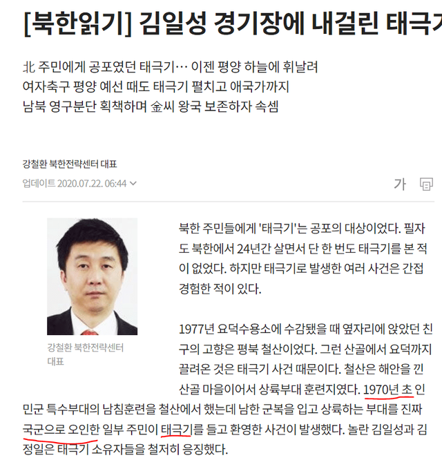 70년대 초반 평안북도 철산에서 인민군이 남한 군복 입고 남침 훈련했는데
