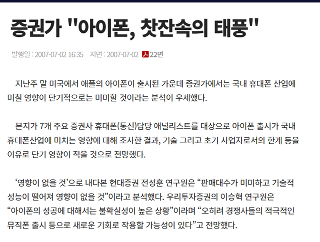 2007년 애플 아이폰 증권사 전문가들 보고서