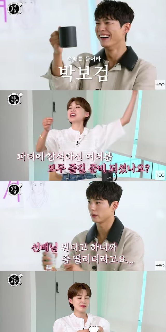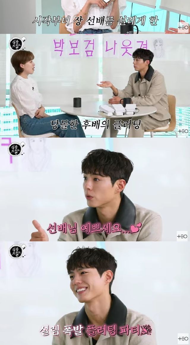 박보검은 "너무 떨렸다"라고 말했다. 장도연이 이유를 묻자 "선배님 뵌다고 하니 떨리더라"라고 말해 장도연을 설레게 했다.