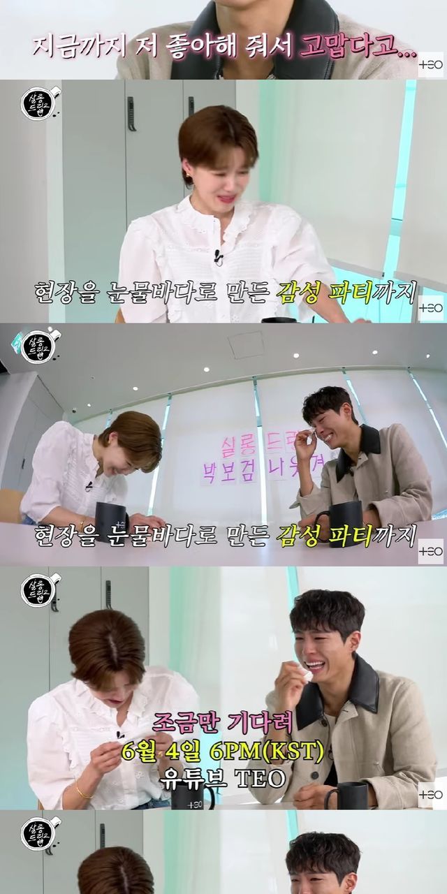 박보검과 장도연은 함께 눈물을 흘려 다음주에 공개될 영상에 대한 기대를 자아냈다.