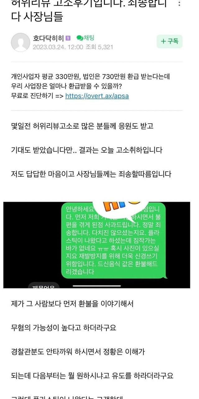 먼저 환불을 얘기했기때문에 사기죄로 성립이 어렵다는 얘기 듣고 무혐의 나오면 또 설칠까봐 고소취하했다고 함….
