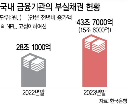 28일 한국은행에 따르면 지난해 말 기준 금융권의 NPL규모는 43조7000억원으로 전년(28조1000억원) 대비 55% 급증했다. 고금리 타격으로 NPL 물량이 예년 대비 크게 증가하면서 올해 시장이 더 활성화될 것이라는 기대감이 높다. 특히 일반적으로 은행권에서 내놓는 NPL 정리 물량 외에 지난해부터 만기연장 및 이자 유예 등으로 간신히 명맥을 이어오던 부동산 프로젝트파이낸싱(PF) 부실화건들이 본격적으로 시장에 나올 것으로 예상되고 있어 확장 속도가 남다를 것이라는 평가다.