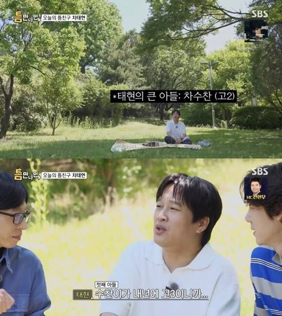 유재석이 차태현의 근황을 묻자 "뭐 별거 없다"고 답했다. 이에 유재석은 "태현이야말로 늘 고민없어 보이는 애다. 그런데 고민 많다"며 "수찬이(아들)가 내년에 고3"이라고 말해 진실된 답변을 유도했다.