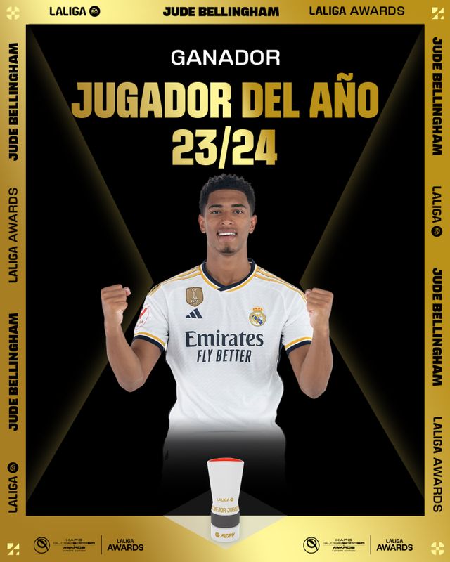 벨링엄이 라리가 올해의 선수상을 받은 가운데 라리가 올해의 영플레이어상은 라민 야말(17·바르셀로나)이 받았다. 2007년생인 라민 야말은 이번 시즌 라리가 37경기(선발 22경기)에 출전해 5골·5도움을 기록했다. 올해의 감독상은 카를로 안첼로티 레알 마드리드 감독과의 경합에서 이긴 미첼 산체스 지로나 감독이 수상했다. 미첼 감독이 이끈 지로나는 이번 시즌 승점 81(25승 6무 7패)로 라리가 3위에 올라 사상 첫 UEFA 챔피언스리그 진출권을 따냈다.