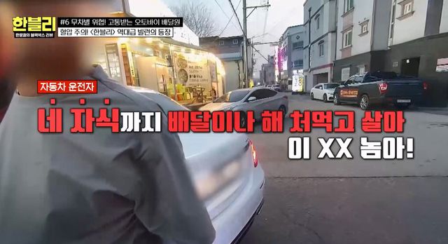 JTBC '한문철의 블랙박스 리뷰'가 골목길에서 마주친 외제차주에게 무차별 폭언을 당한 오토바이 배달원의 사연을 조명했다.