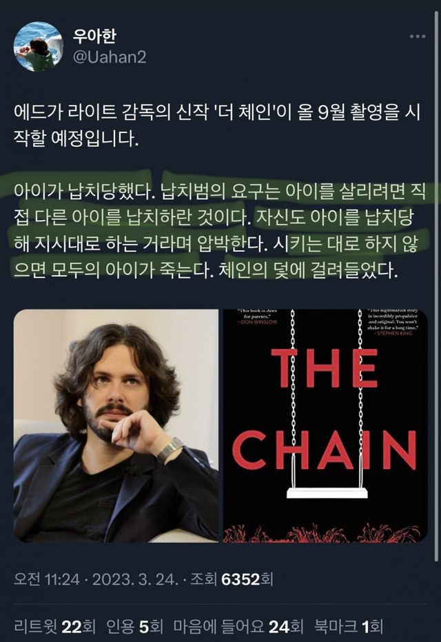 스티븐 킹이 “이 악몽 같은 이야기는 믿을 수 없을 정도로 추진력이 있고 독창적입니다. 오랫동안 잊을 수 없을 겁니다.”
