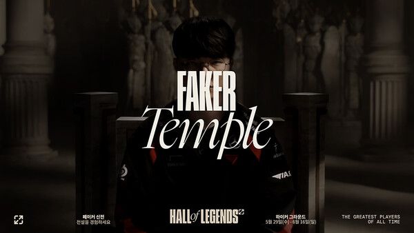 페이커의 전설의 전당 헌액을 축하하고 업적을 돌아보는 공간도 열린다. 라이엇 게임즈는 오늘(29일)부터 6월 16일(일)까지 하이커 그라운드(HiKR GROUND, 서울시 중구 소재)에서 ‘페이커 신전’을 운영한다. 플레이어는 페이커 신전에서 ▲페이커 ’엄지척’ 형상화 동상 ▲상습 숭배 및 기습 숭배 존 ▲전설의 전당 스킨 체험 존 등의 콘텐츠를 즐기고 추첨을 통해 특별 제작 키캡 등 다양한 상품을 얻을 수 있다.