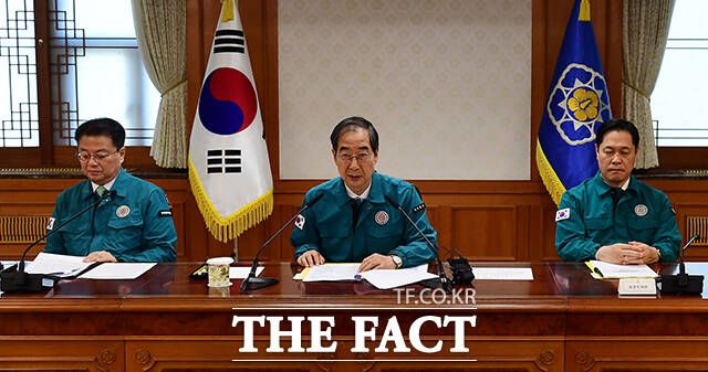 [더팩트ㅣ임영무 기자] 한덕수 국무총리가 29일 오전 서울 종로구 정부서울청사에서 열린 의사 집단행동 중앙재난안전대책본부 회의에 참석해 모두발언을 하고 있다.