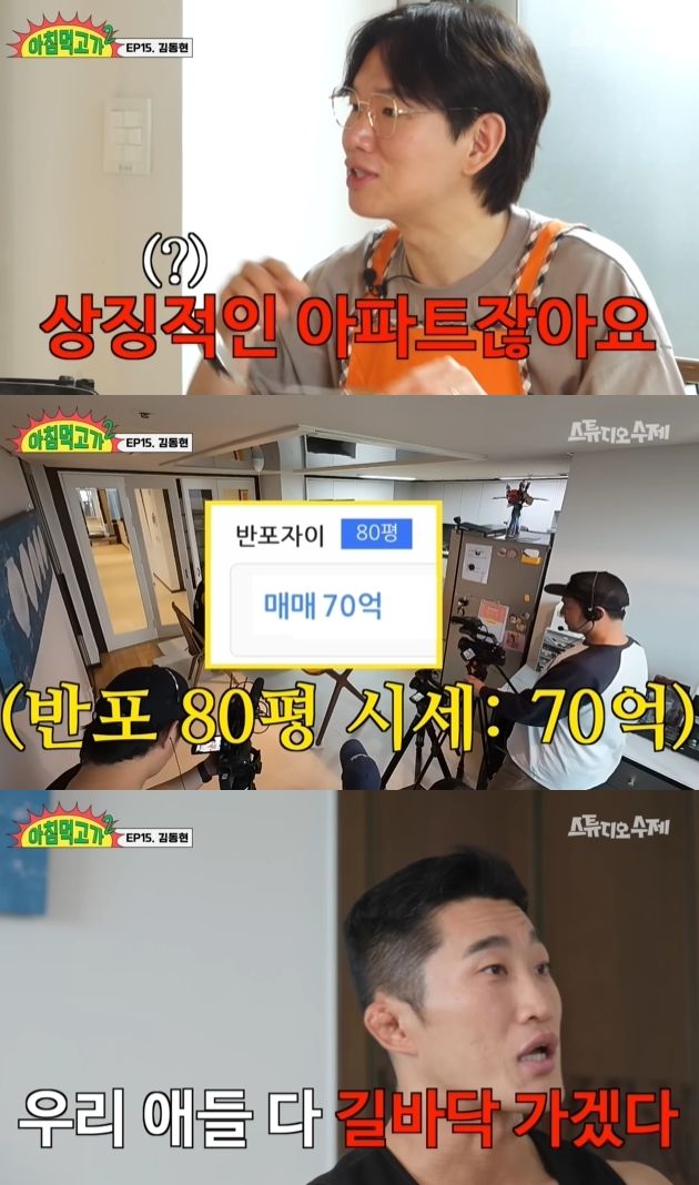 "여기 평수가 어떻게 되냐"는 장성규에게 김동현은 "80평이다"라고 답했다. 이어 "자가는 아니다. 자가는 못 산다"며 "반전세로 거주 중이다"고 답했다.