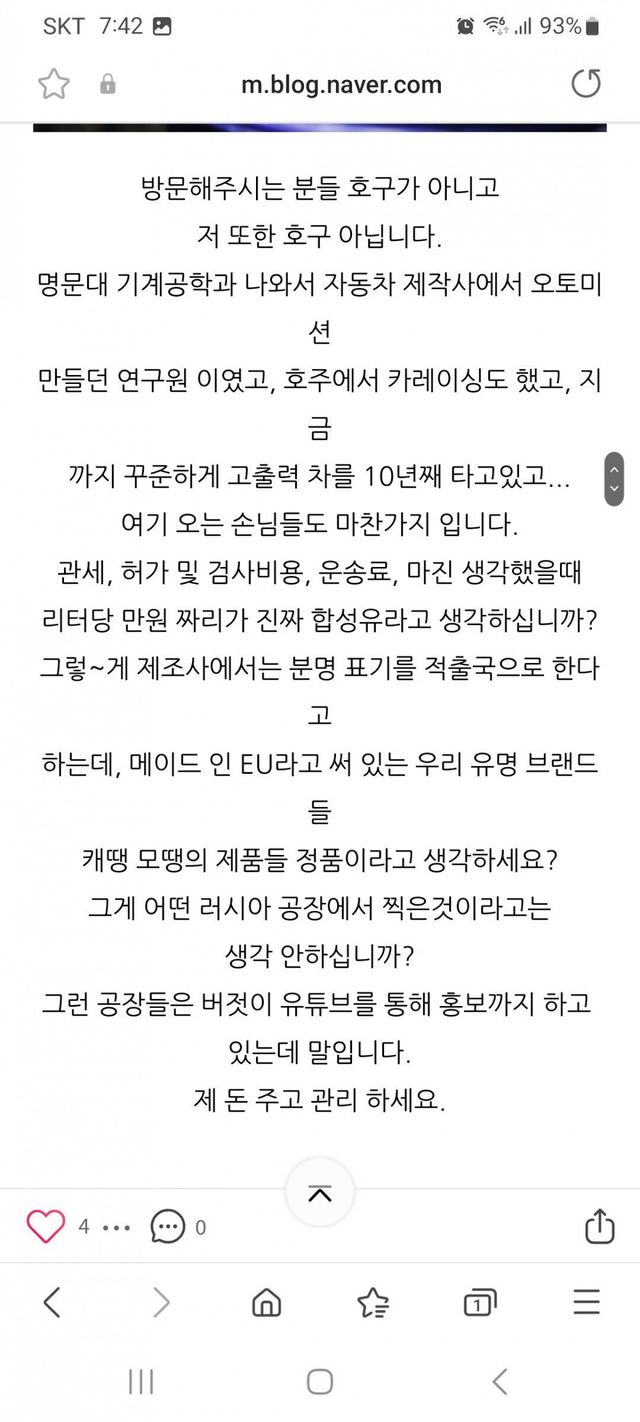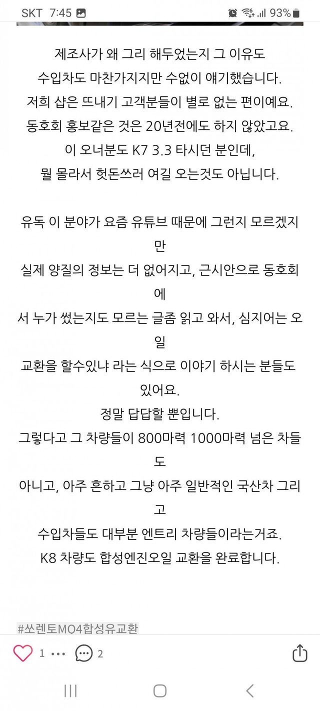 6. 그러니까 헛소리 하지말고 내가 추천하는 듣도보도 못한 엔진오일이나 넣어라 (????)